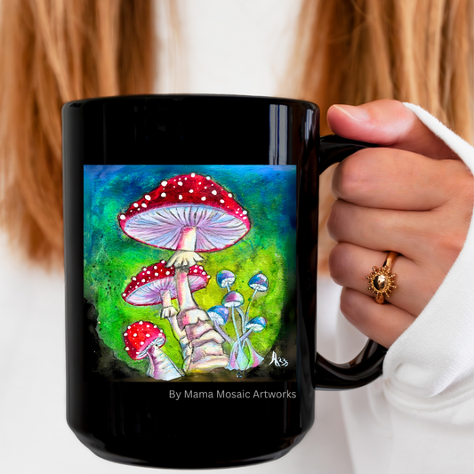 Shrooms Mug - 15oz Glossy Ceramic - Shroomtasia from Mama Mosaic Artworks