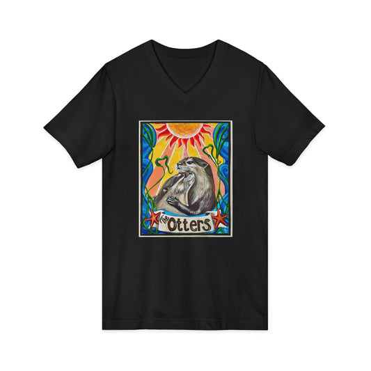 Otter Love V-Neck Tee | Unisex Short Sleeve Shirt, Animal Lover Gift, Nature Tee, Cute Otter Shirt