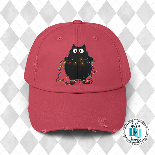 Christmas Kitty Unisex Distressed Cap - Adjustable