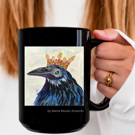 Crow Mug - 15oz Glossy Ceramic - King Crow from Mama Mosaic Artworks