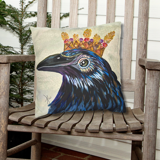 Crow Throw Pillow Cover - Faux Suede 3 Sizes - King Crow from Mama Mosaic Artworks
