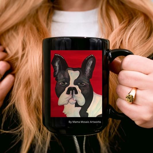 Bulldog On Red from Mama Mosaic Artworks - 15 oz Black Glossy Ceramic Mug