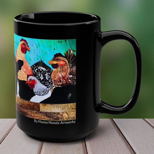 Cows and Chickens Mug From Mama Mosaic Artworks - 15 oz Black Glossy Ceramic Mug