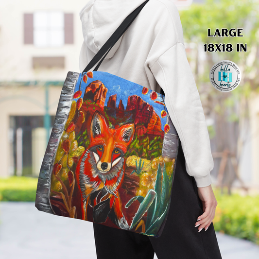 Sedona Fox Tote Bag - Original Art, Fox at Cathedral Rock from Mama Mosaic Artworks - 3 Sizes