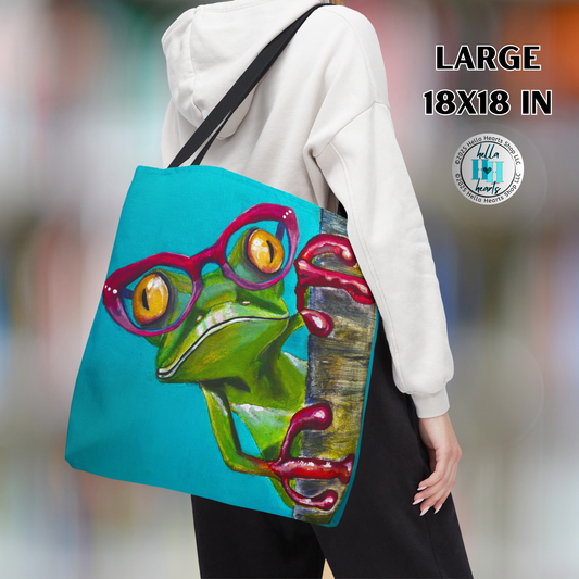 Frog Tote Bag - Original Art, Read More Optical Frog from Mama Mosaic Artworks - 3 Sizes