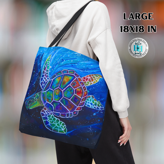 Sea Turtle Tote Bag - Original Art, Flying Turtle from Mama Mosaic Artworks - Clean Our Seas