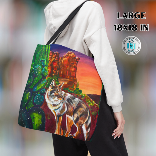 Sedona Coyote Tote Bag - Original Art, Coyote at Coffee Pot Rock from Mama Mosaic Artworks - 3 Sizes