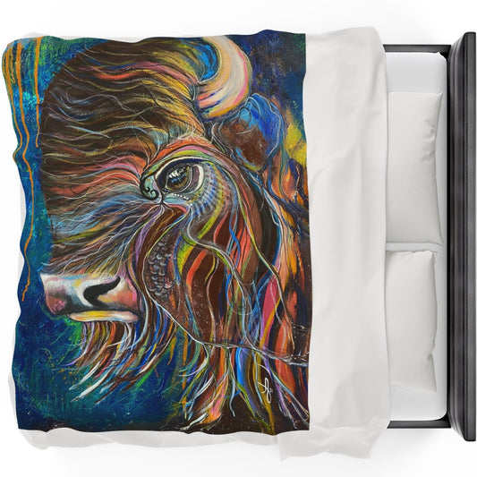 Bison Blanket - Velveteen Plush Throw - Be Strong Adapt and Survive from Mama Mosaic Artworks
