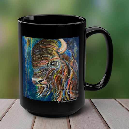 Bison Mug - 15oz Glossy Ceramic - Be Strong, Adapt and Survive from Mama Mosaic Artworks