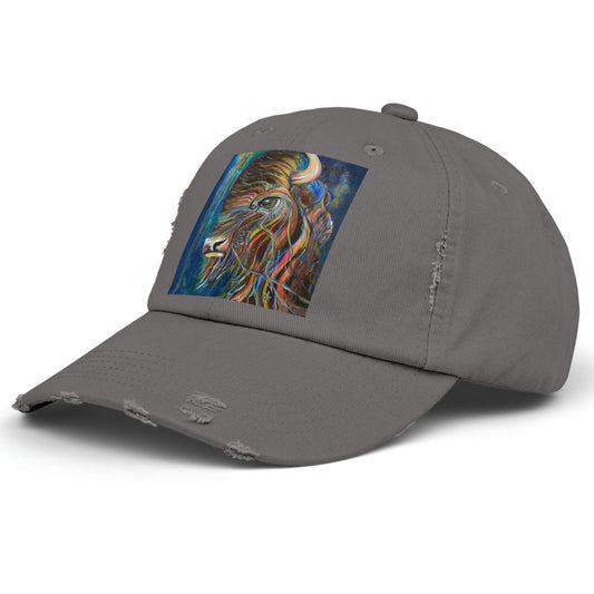 Bison Distressed Hat - Adjustable - Be Strong Adapt and Survive from Mama Mosaic Artworks