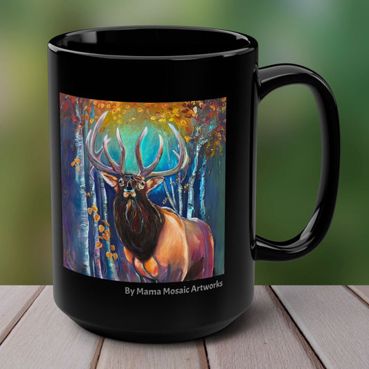 Wapiti Elk Mug - 15oz Glossy Ceramic - Song of Autumn Elk from Mama Mosaic Artworks