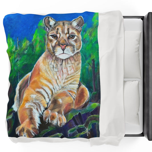 Cougar Blanket - Velveteen Plush Throw - Cascade Lioness from Mama Mosaic Artworks
