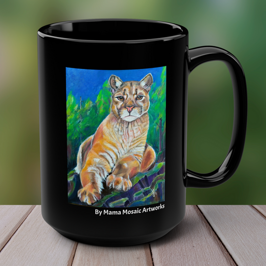 Cougar Mug - 15oz Glossy Ceramic - Cascade Lioness from Mama Mosaic Artworks