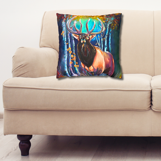 Wapiti Elk Throw Pillow Cover - Faux Suede - 3 Sizes - Song of Autumn Elk from Mama Mosaic Artworks