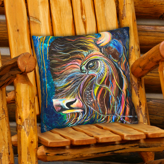 Bison Throw Pillow Cover - Faux Suede 3 Sizes - Be Strong, Adapt and Survive from Mama Mosaic Artworks