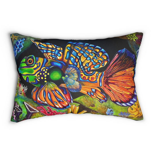 Tropical Fish Lumbar Pillow and Cover - 20x14" - Portrait of Mandarin Goby from Mama Mosaic Artworks