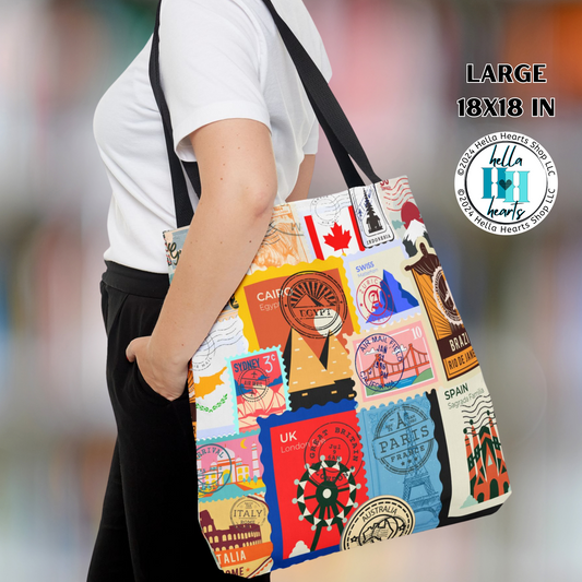 Travel Stamp Tote Bag - Water Resistant Tote - 3 Sizes