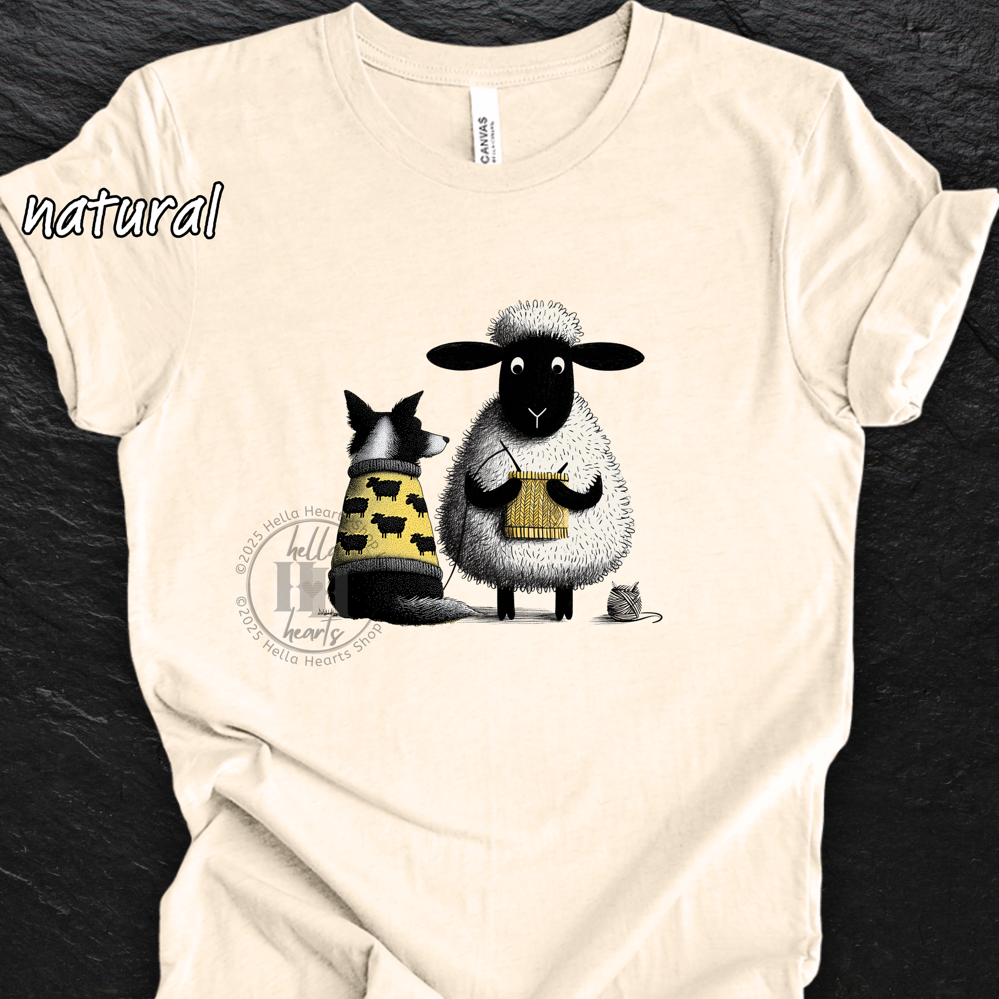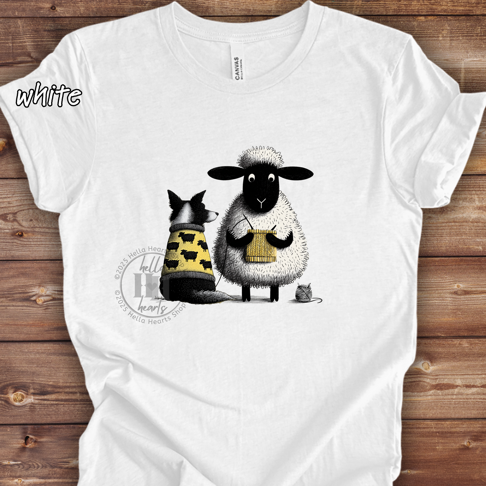 This Border Collie and Sheep Friends Tee is perfect for anyone who loves knitting and cute animal designs. It gives off a cozy, friendly vibe and is ideal for lounging at home or running errands. This shirt is relevant for sheep lovers, knitters, and animal enthusiasts, making it a great gift for birthdays, Christmas, and any occasion.