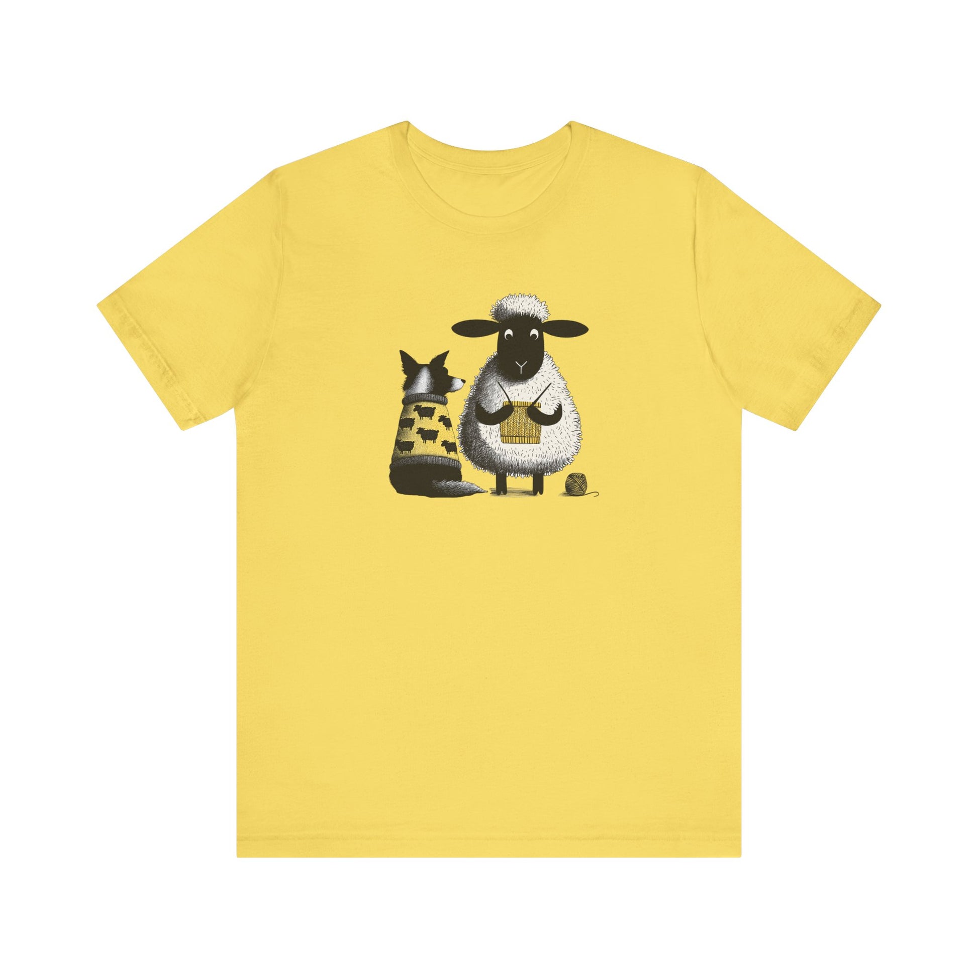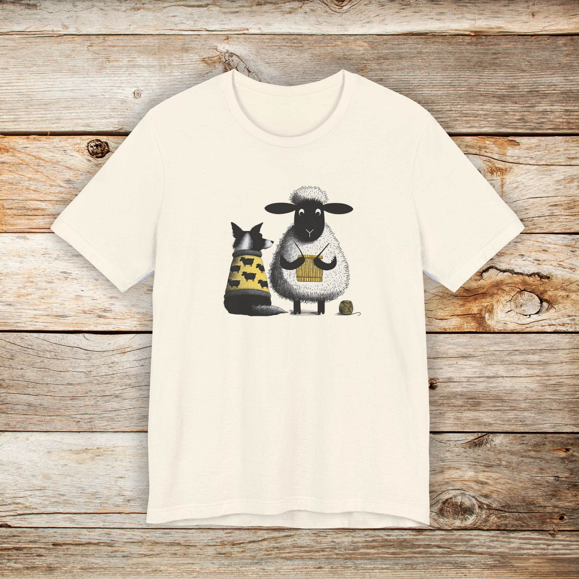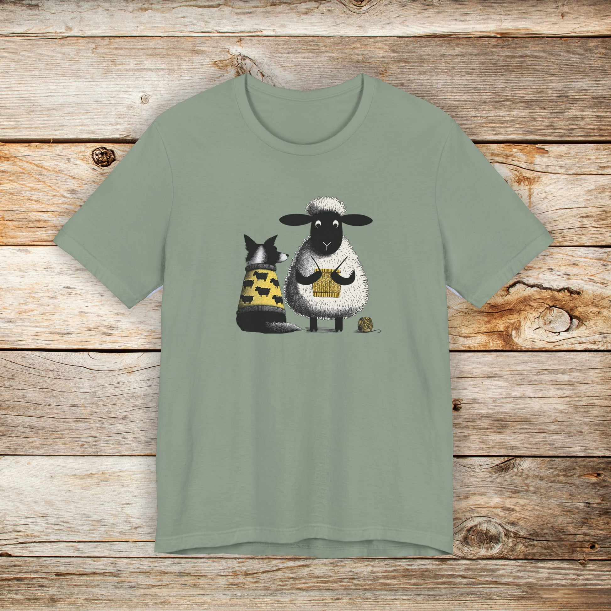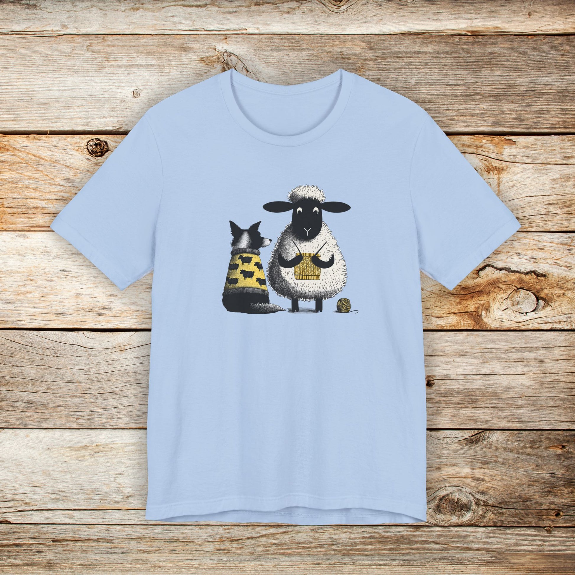 This Border Collie and Sheep Friends Tee is perfect for anyone who loves knitting and cute animal designs. It gives off a cozy, friendly vibe and is ideal for lounging at home or running errands. This shirt is relevant for sheep lovers, knitters, and animal enthusiasts, making it a great gift for birthdays, Christmas, and any occasion.