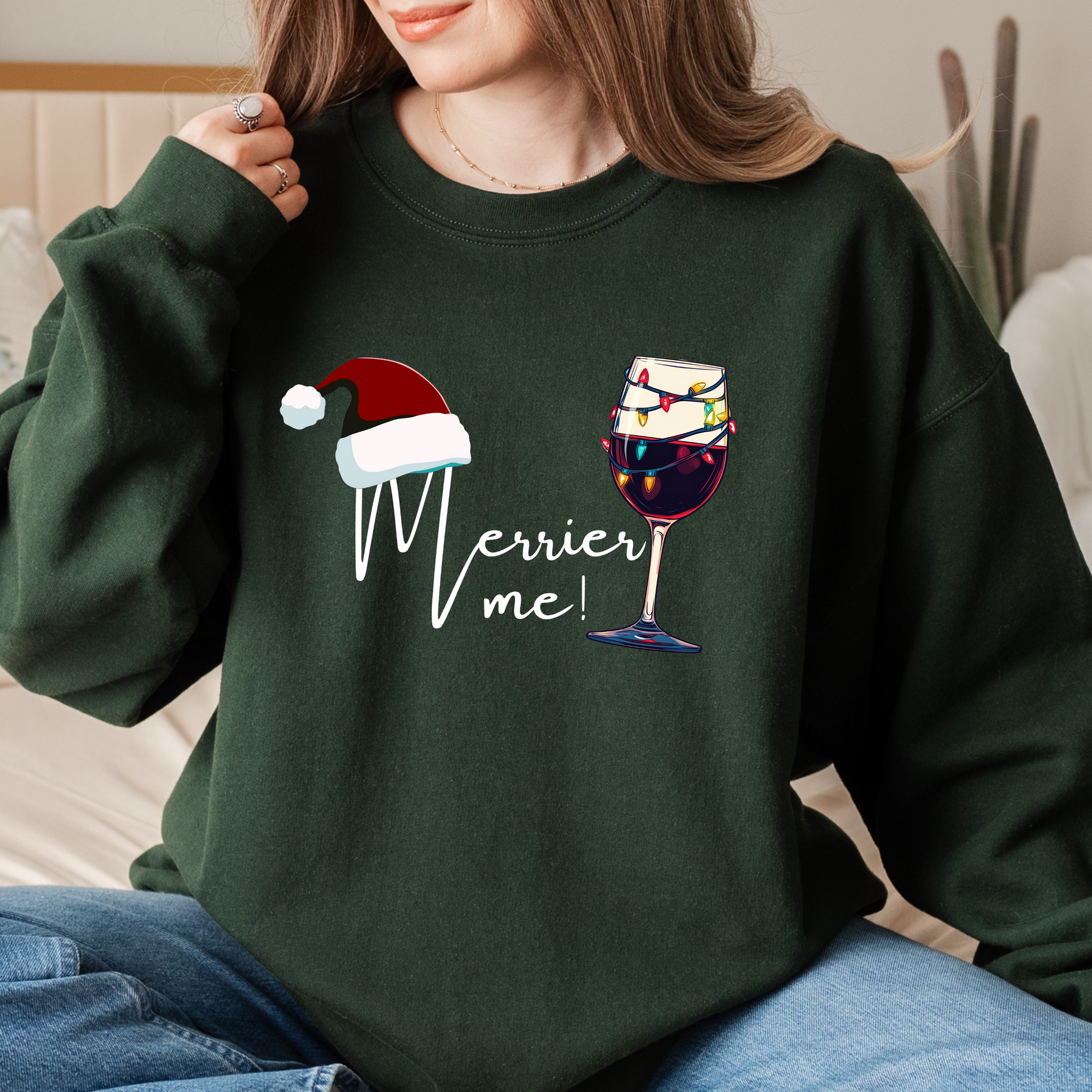 Enjoy this soft sweatshirt and a glass of wine (or grape juice!). Tis the season to get Merrier!